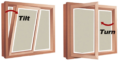 손잡이 작동으로 Tilt(환기), Turn(여닫이) 기능을 활용할 수 있고